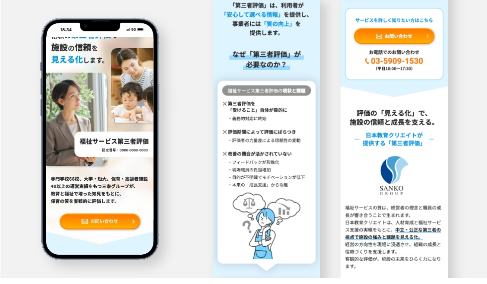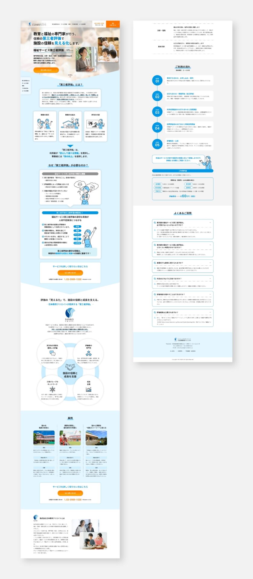- 東京都新宿区で福祉サービス第三者評価事業を展開されている、株式会社日本教育クリエイト様の「保育事業第三者評価」ランディングページ(LP)を制作いたしました。